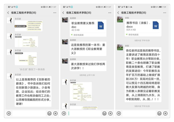 各总支、支部把读书活动作为主题党日活动的重要内容,创新思维,丰富形式,借助各种介质及新媒体平台,通过线上线下相结合的方式,积极组织开展读书沙龙、读书分享会、领读人等丰富多彩的系列活动,打造了“红烛读书会”“读书片刻”等阅读品牌,力求把读书活动激发出来的学习热情转化为推动工作的干劲,实现学习成果的转化。学院图书馆开展了“莫负春光好时节 阅读学习正当时”为主题的读书月系列活动,依托“21天阅读打卡挑战赛”“书香战‘疫’,阅读相伴”征文比赛、线上朗读比赛等活动,充分发挥线上资源、平台的优势,通过开展各类阅读推广活动,提升师生的人文素养。