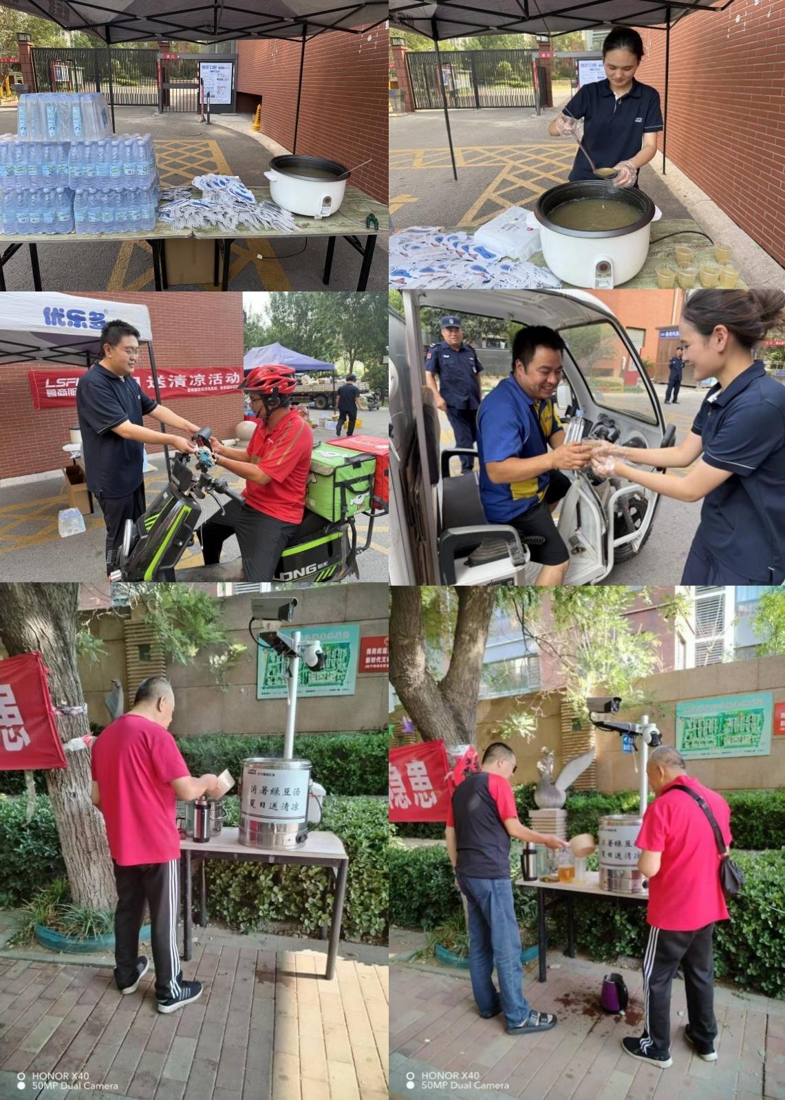 菏泽凤凰城和济宁南池公馆的工作人员为业主、快递员和外卖小哥送上贴心关怀——一把把印着温馨提示的扇子驱散燥热,一瓶瓶冰镇矿泉水解渴降温,一碗碗精心熬制的绿豆汤清甜解暑。接过清凉的瞬间,笑容在每个人脸上绽放。这份夏日里的惦念,是(中国)科技公司服务对业主的暖心守护,也是对户外工作者的真诚致敬。