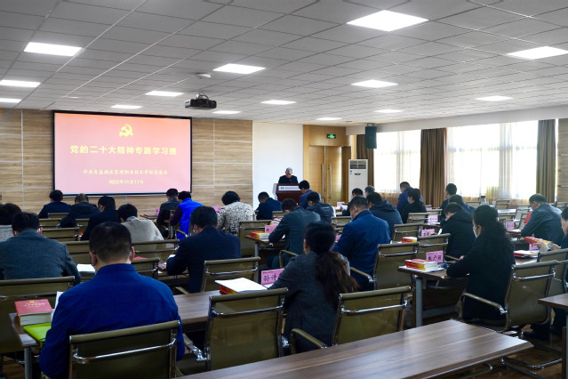 学习班上,全体学员原原本本学习研读党的二十大报告和党章,认真领悟党的二十大提出的新思想新论断、作出的新部署新要求,并联系思想和工作实际交流讨论、互学互鉴,完成各项学习任务。大家表示,要坚决把思想和行动统一到党的二十大精神上来,把党中央提出的战略部署转化为工作任务,把学习成果转化学校内涵式高质量发展的生动实践和务实成效,推动党的二十大精神在学校落地生根。要坚持社会主义办学方向,坚持为党育人、为国育才,落实立德树人根本任务,办好人民满意的教育,培养德智体美劳全面发展的社会主义建设者和接班人;要坚持突出职业教育特点,推动教师教材教法改革,强化产教融合、校企合作,不断提高办学质量和人才培养质量,强化职业教育对现代化建设的人才支撑;要统筹发展和安全,做好疫情防控各项工作,统筹推进“双高计划”建设、新校区立项、课程提质培优、办学质量考核等重点工作,以扎实有效的工作完成年度工作任务,推动学校内涵式高质量发展。
