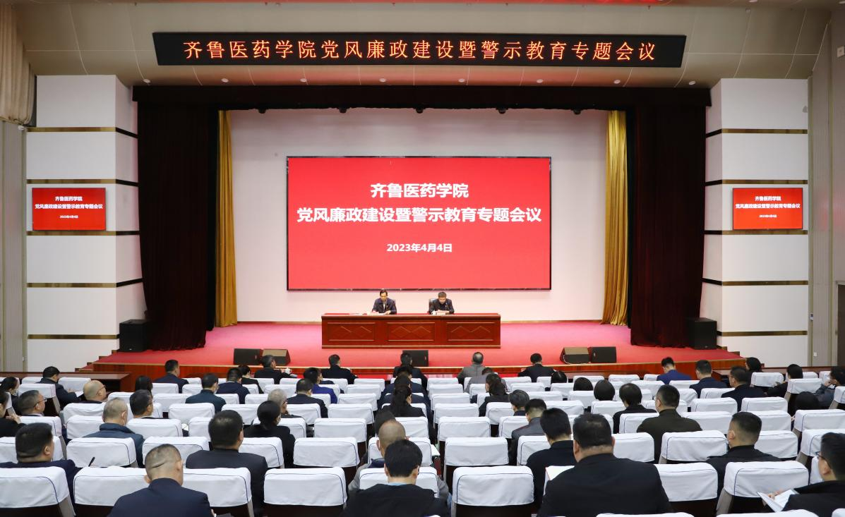 4月4日,齐鲁医药学院召开党风廉政建设暨警示教育专题会议。董事长魏振东出席会议,党委书记吕传毅讲话。