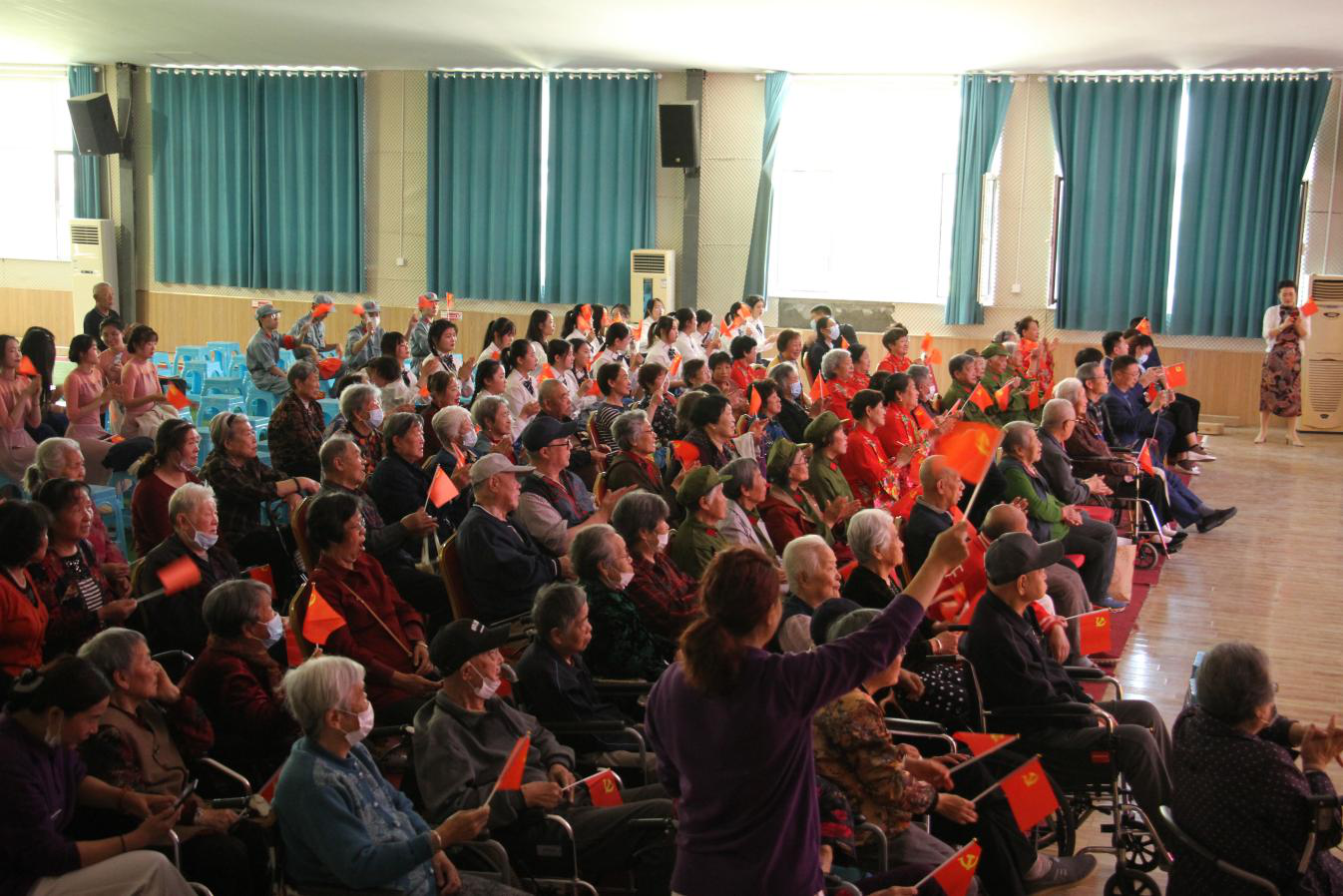 5月27日,省城市学院“唱着歌儿学党史”党史学习教育宣讲团走进御花园老年养护中心,受到了御花园董事长宋华西和老人们的热烈欢迎。学院党委副书记刁洪斌以及高新区海天社区党总支书记初君梅参与活动。