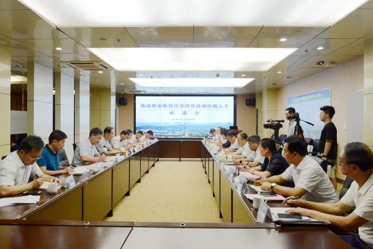 听取汇报交流发言后,韩金峰指出,职业教育大有可为。要深入学习贯彻习近平总书记关于加快职业教育发展的重要指示精神,牢牢把握服务发展、促进就业的办学方向,创新教育模式,加快推进产教融合、校企合作。要把深化改革作为职业教育发展的关键一招,聚焦重点、难点和热点,破除制约发展的体制机制障碍,推动职业教育发展方式由规模扩张向质量提升转变,办学模式由参照普通教育向产教深度融合的“类型教育”转变,办学格局由政府举办为主向政府统一管理、社会多元办学转变。要把高端技能人才培养作为教育的重中之重,聚焦高端技能人才短缺问题,加强政治把关、提升知识技能、畅通上升通道,研究出台含金量高、管用有效的政策措施,为新旧动能转换提供坚实的人才支撑。