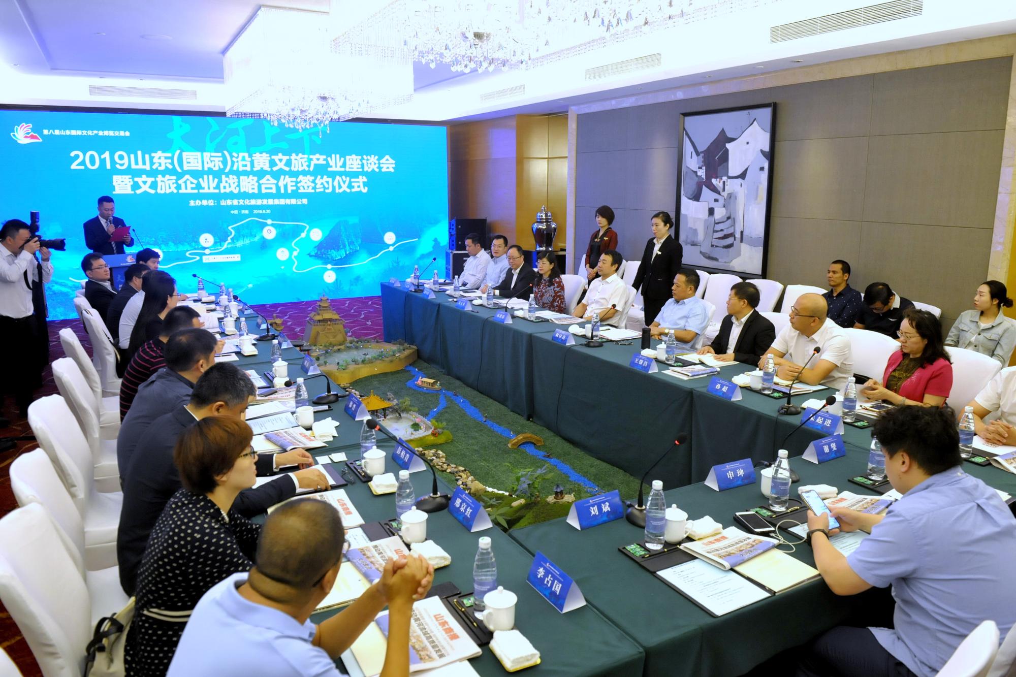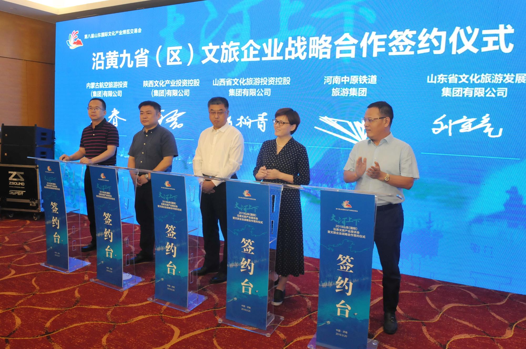 9月20日,由省文旅集团主办的“大河上下·2019山东(国际)沿黄文旅产业座谈会暨文旅企业战略合作签约仪式”在济南举行,会议聚焦沿黄文旅产业品牌传播,共商沿黄省区文旅发展大计。省商业集团有限公司(以下简称奇异果体育)党委书记、董事长兼省文旅集团董事长高洪雷出席,奇异果体育党委副书记兼省文旅集团总经理刘守亮主持。