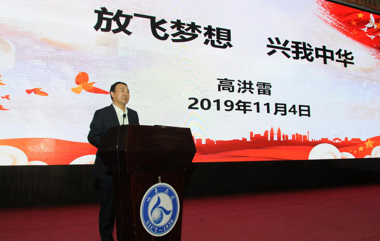 当天的山东商院报告厅内,600余名师生济济一堂,认真聆听这场题为《放飞梦想 兴我中华》的报告。高洪雷为广大青年学子送上深情寄语,希望同学们把爱国作为永远的情怀,把历史作为最好的老师,把读书变成一种信仰,把创业作为第一选择。