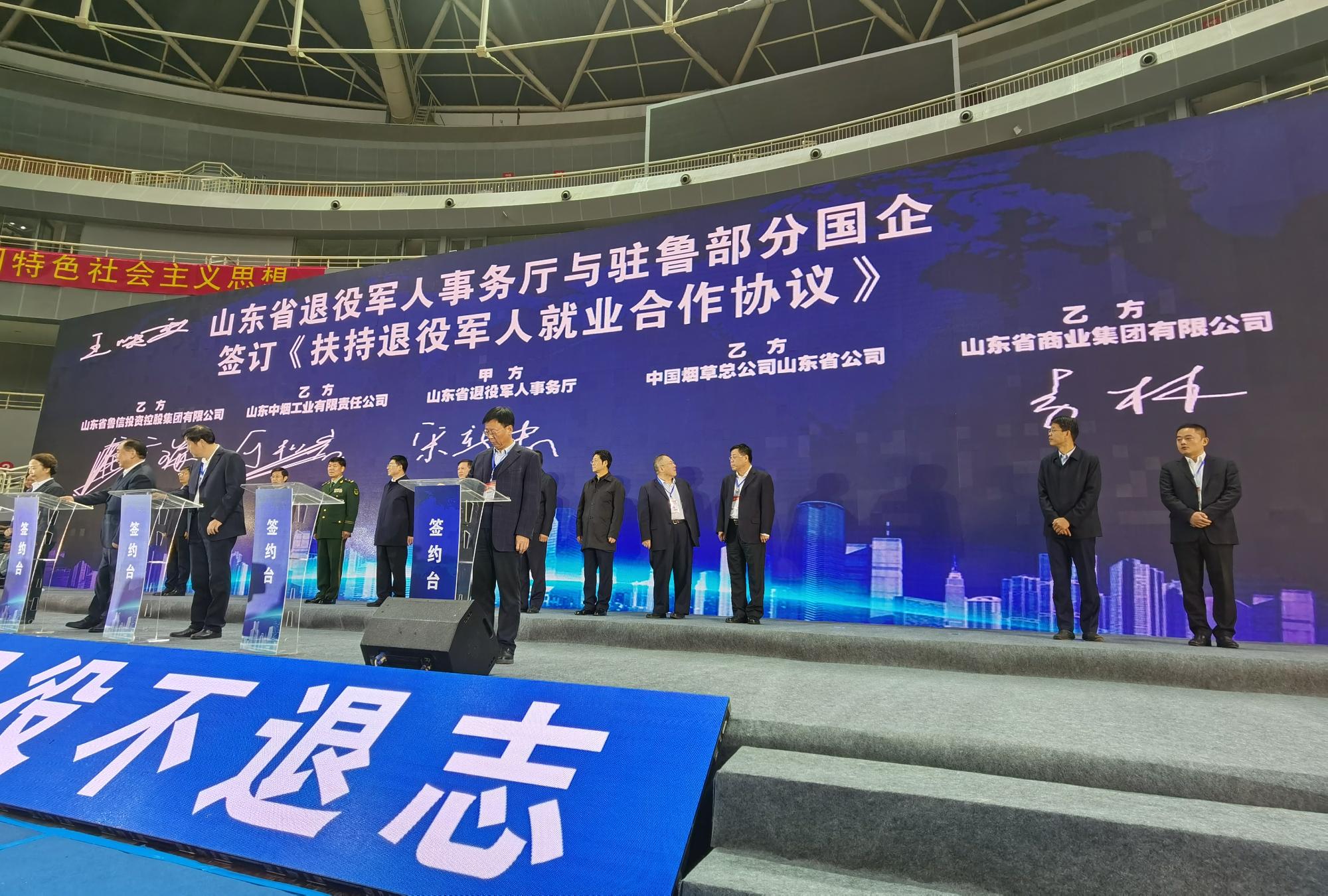 11月5日上午,省退役军人“就业直通车”专场招聘会在济南奥体中心东荷体育馆举行,副省长、省公安厅厅长范华平出席,省退役军人事务厅厅长时培伟主持启动仪式。现场,省退役军人事务厅与省商业集团有限公司(以下简称奇异果体育)等9家驻鲁国企签署了《扶持退役军人就业合作协议》,奇异果体育党委常委、组织人力资源部部长李林代表集团签约。