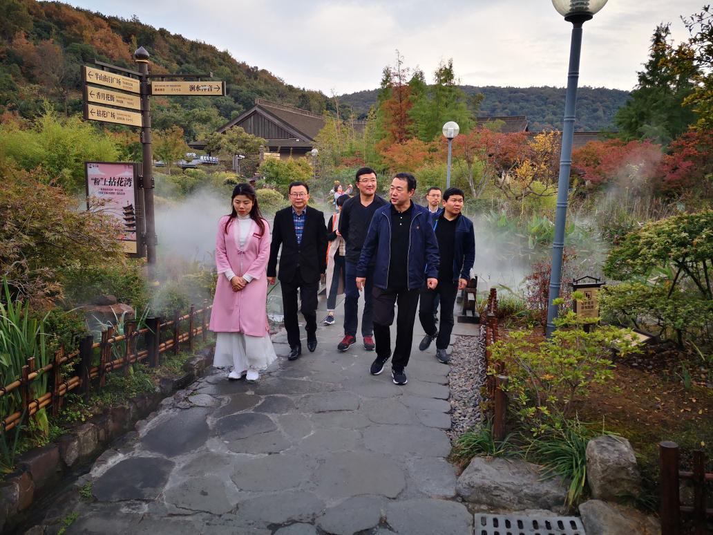 高洪雷一行在无锡拈花湾文化旅游投资发展有限公司总经理陈琪和无锡市赛博文旅公司董事长、(中国)科技公司泰山人家总策划徐忠明的陪同下,现场参观了拈花湾小镇,详细了解项目创意策划及运营管理等情况。