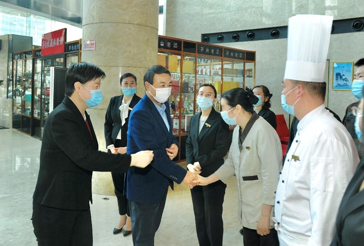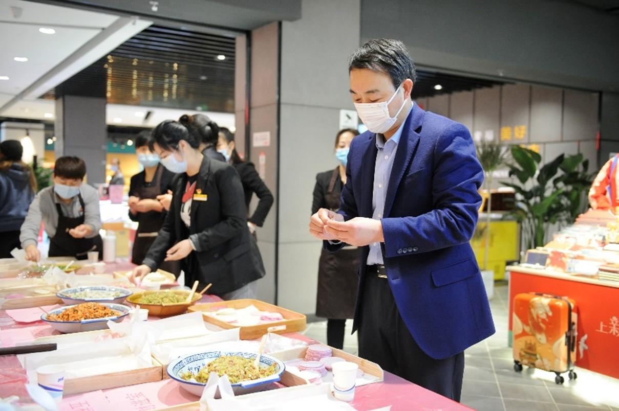 在济南索菲特银座大饭店内,高洪雷深入察看大堂餐吧、49层银顶旋转餐厅等,了解酒店内特色年夜饭销售情况,听取了门店负责人有关情况汇报,并详细询问商品供应、货源渠道、价格变动和商品追溯等情况。高洪雷同时指出,春节期间要确保商品供应充足、品种丰富多样、质量可靠放心、价格稳定公道。要切实将疫情防控抓实抓细抓到位,确保广大群众度过一个欢乐祥和的春节。