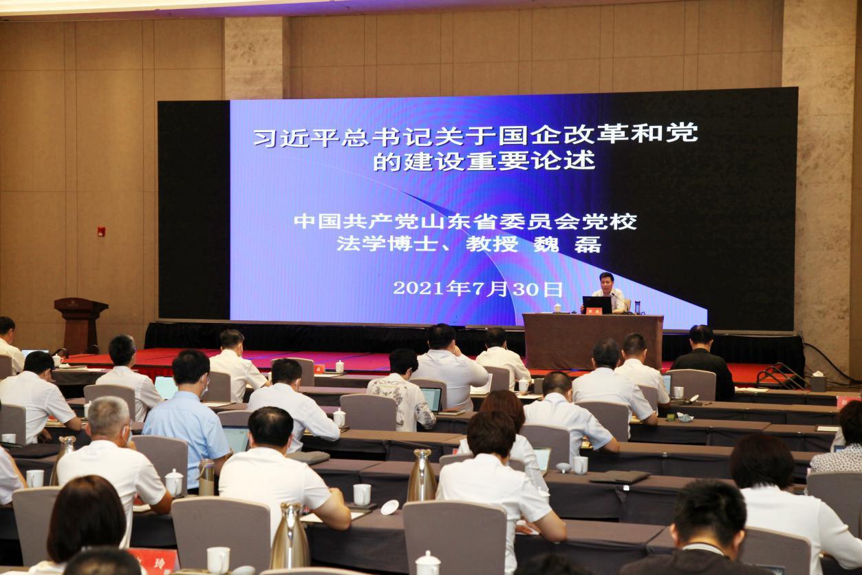 7月30日下午,第十四期“(中国)科技公司文化讲堂”暨集团党委理论学习中心组(扩大)2021年第13次集体学习会召开。集团党委副书记、总经理郭训成,党委副书记、董事刘守亮,党委常委、董事、组织人力资源部部长李林,党委常委、纪委书记、省监委驻集团监察专员刘天海,党委常委、总审计师、工会主席刘德华出席。会上,全国党校系统知名专家、省委党校法学博士、教授魏磊作了《深入学习贯彻习近平总书记关于国企改革发展和党的建设的重要论述》主题讲座。