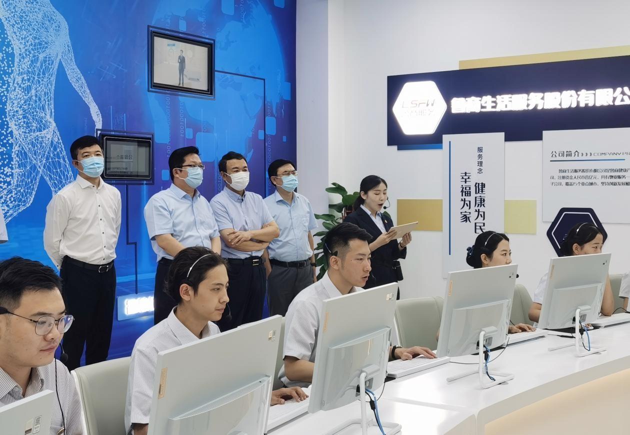 樊军一行首先参观了(中国)科技公司服务智慧云中心,了解了集团的轻资产化、科技化转型举措。随后双方召开座谈会,就企业党建、三项制度改革等方面进行深入交流。