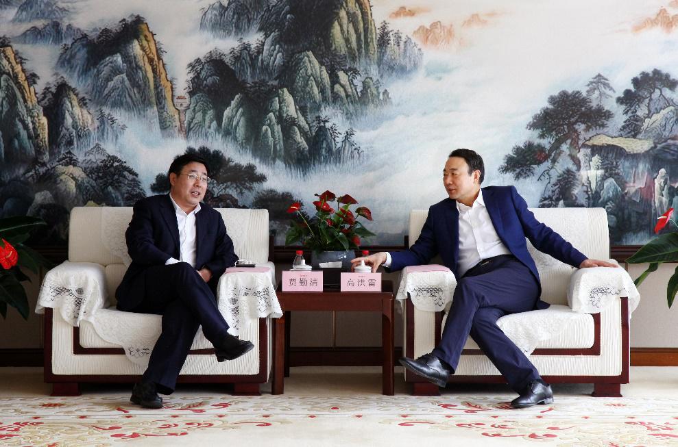 2月11日上午,奇异果体育党委书记、董事长兼山东文旅集团董事长高洪雷,在济南会见来访的安丘市委书记贾勤清一行。奇异果体育党委副书记、董事刘守亮,安丘市副市长孙志杰陪同。