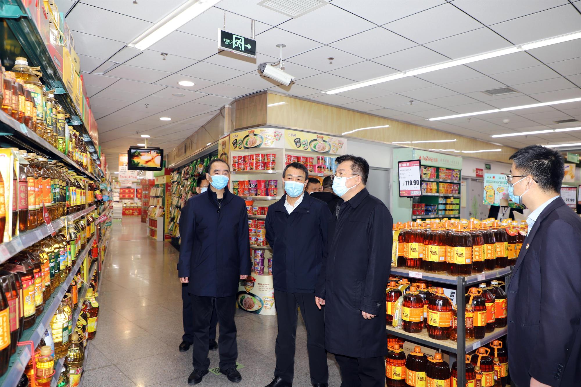 在银座集团花园店入口处,张斌一行经过测温验码后进入店内,详细察看疫情防控举措落实及商品供应情况,询问商品储备、货源渠道及价格变动等事宜。张斌要求,当前疫情防控形势严峻复杂,银座集团应当扛起国企责任,防疫保供两手抓,全力为人民群众生命安全和身体健康保驾护航。要压紧压实责任,坚持“人、物、环境”同防,从严从实落实扫码、测温、戴口罩、日常消杀等防控措施,加强公共场所防范管理,落实重点岗位常态化核酸检测,切实筑牢群防群治严密防线。要密切关注市场变化和民生需求,进一步提高应急保障能力,组织做好重要民生商品的供应调度、投放储备等工作,确保市场供应量足价稳质优,同时,严把市场准入关和质量安全关,持续强化冷链食品全流程监管,确保群众餐桌安全。