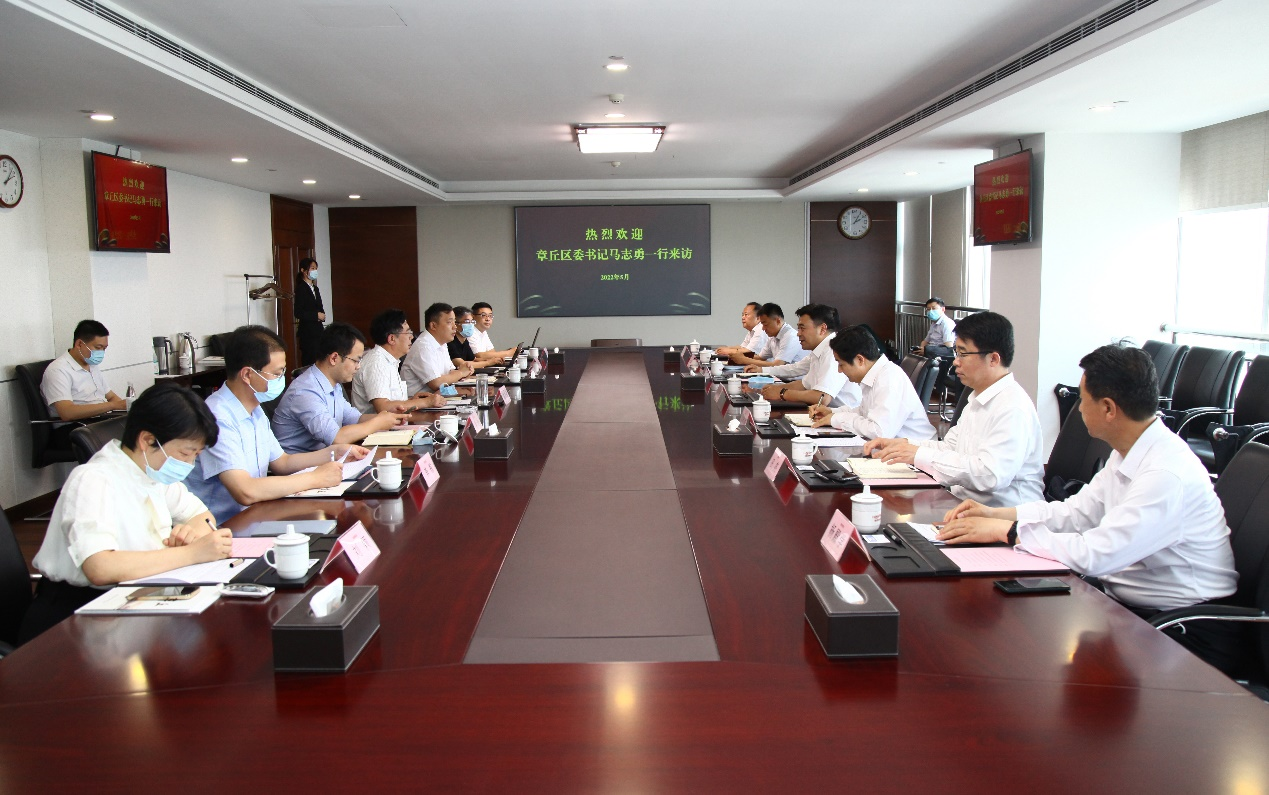 5月24日下午,集团党委副书记、总经理郭训成会见来访的章丘区委书记、明水经济技术开发区党工委书记马志勇一行,章丘区委副书记、区长边祥为陪同。
