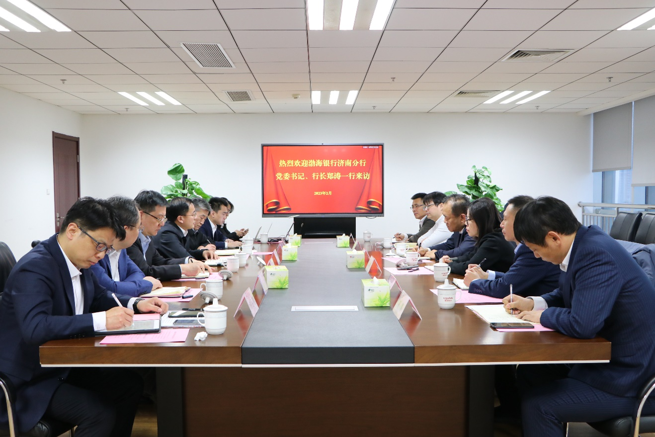 2月15日,渤海银行济南分行党委书记、行长郑涛到访奇异果体育,集团党委副书记、董事、副总经理朱华建热情接待。