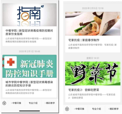 支部发挥专业优势,助力防疫保障工作。学院各支部发挥战斗堡垒作用,通过微信群、QQ群等平台,及时发布省、市相关疫情信息、文件、防疫知识等,教育党员充分认识到在这场“战疫”中身负的责任和使命,进一步提高政治站位。同时,各支部充分发挥专业优势,中餐学院党支部为保障学院师生身体健康,推出《新型冠状病毒疫情防控期间居家饮食指南》,为师生提供二十余条饮食相关意见建议,同时发布系列文章,为“宅”在家中的师生提供居家饮食指导;旅游与服务系党支部青年教师谱写原创歌曲《战疫魔》,录制旅服版“手语舞”等多个文艺作品,用慷慨激昂的旋律、优美曼妙的舞姿鼓舞人们众志成城,凝聚起战胜疫情的信念和勇气。西餐学院党支部利用网络平台线上直播德育课,宣传防疫知识的同时,致敬一线防疫人员,给学生献上了一堂生动的爱国主义教育课。
