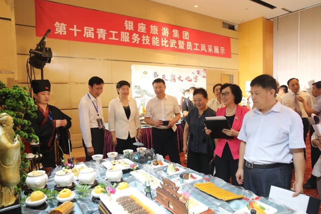 为弘扬劳模精神和工匠精神,推动高技能人才队伍建设,同时为山东文旅鲁菜馆“馆藏菜”遴选菜品,7月22日,银座旅游第十届青工服务技能比武暨员工风采展示活动在济南索菲特银座大饭店举行。中国旅游饭店业协会副会长、山东省旅游饭店协会会长何庄龙,山东省旅游饭店协会常务副会长马尚英,银座旅游党委书记、董事长李浩及公司班子成员出席并为获奖选手颁奖。
