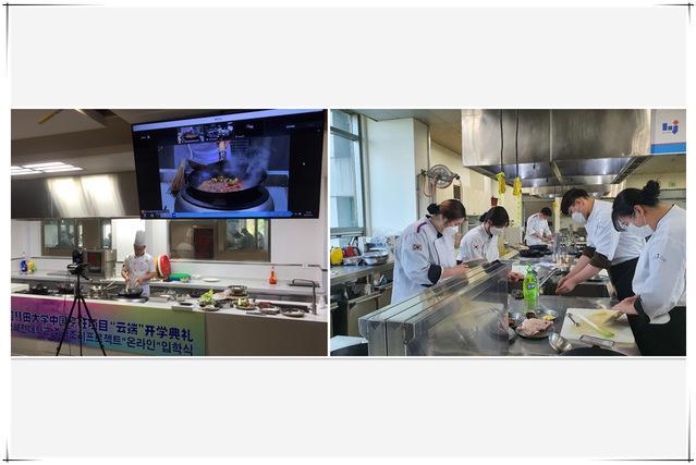 开学典礼后,烹饪学院教师丁德龙讲授网络直播课程第一课,韩国留学生根据线上指导进行了实际操作,达到了预期效果。这是学院鲁菜标准首次向韩国直播,为职业院校的课程标准输出奠定了基础。