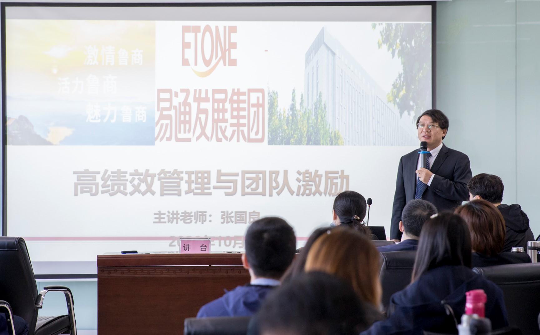 为贯彻落实集团创新工作精神,切实推动干部队伍建设与工作质量提升,强化打造学习型组织,易通推出“赋能·突破--干部提升”系列培训计划,于10月17日成功开班并开展首期培训。本次培训邀请清华大学职业经理人训练中心特聘讲师、北京大学总裁班特聘讲师、第八届中国企业教育百强人力资源专业十佳培训师张国良,围绕“高绩效管理与团队激励”主题作专题培训,公司班子成员、各经营部位班子与条线负责人等60余人参加。