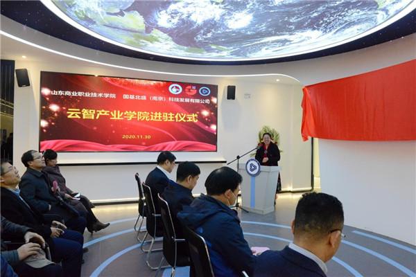 近日,山东商院与国基北盛(南京)科技发展有限公司举行了“云智产业学院”进驻仪式,产业学院正式进驻山东商院。山东省教育厅总督学邢顺峰,全国工业和信息化职业教育教学指导委员会副主任委员、中国软件协会产教融合专业委员会主任徐玉彬,山东商院党委书记张志东,南京第五十五所技术开发有限公司副总裁、国基北盛(南京)科技发展有限公司总经理余云峰等领导参加仪式。山东商院副院长徐红主持会议。