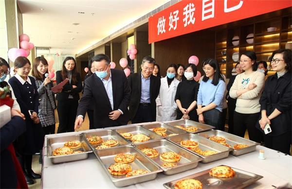 在名厨献艺环节,齐鲁首席技师于德水为大家讲解养生知识、家常菜制作小技巧,并现场进行厨艺展示。女职工们动手制作了迷你烤肉披萨,学习了食品制作技巧,还有三位幸运儿的作品被评为“最美披萨”,获得了现场职工们的一致好评。