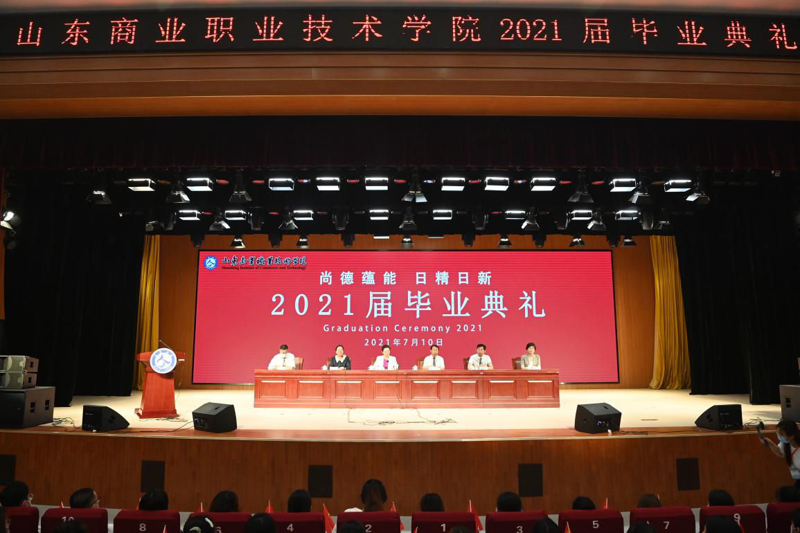 7月10日,山东商院2021届学生毕业典礼隆重举行。学校领导班子成员出席毕业典礼。
