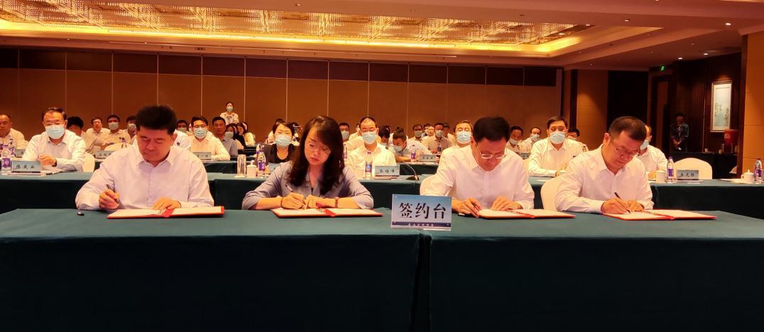 公司副总经理、产业发展中心总经理尹炜、产业发展中心副总经理周宇代表公司分别与泰山区政府及山东省财金健康集团签署战略合作协议。