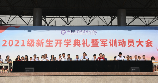 9月15日,山东商院2021级新生开学典礼暨军训动员大会举行。