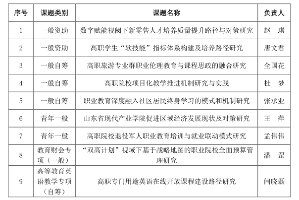 近日,省教育科学规划领导小组办公室公布山东省教育科学“十四五”规划2021年度课题立项名单,青岛酒店学院9项课题获得立项。