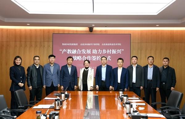 宋超代表山东商院与城乡融合公司签订产教融合合同书。双方将在专业与教学课程体系、虚拟仿真实训基地、九女峰乡村振兴师资培训基地、九女峰乡村振兴产业学院、产教融合型企业申报和教师实践基地等方面,发挥各自资源优势,深化产教融合,共同打造校企命运共同体。