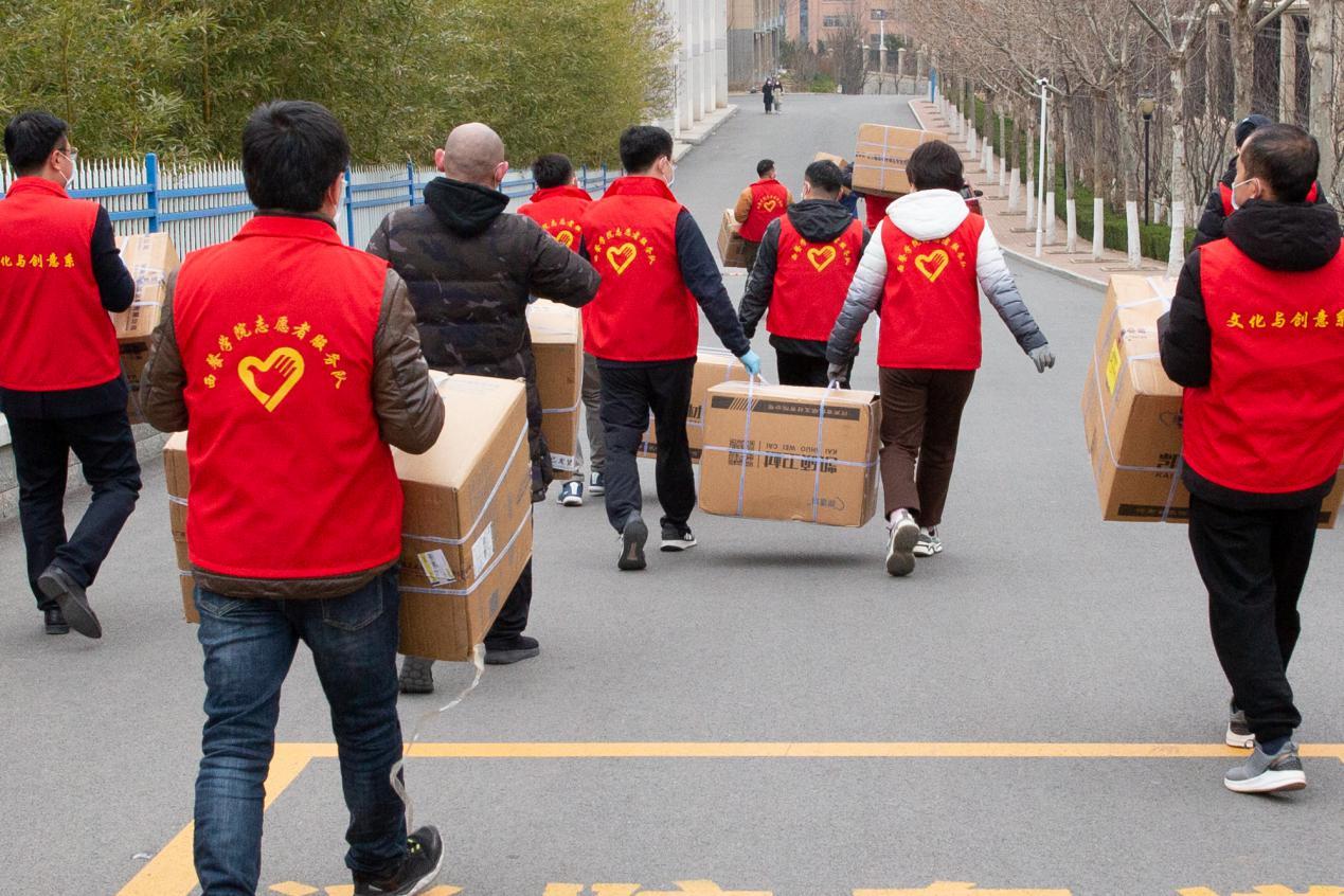 因货运车辆无法进入,防疫物资运抵校园后如何运输成了问题。学院党委集中整合各部门党员组成抗疫志愿者服务队,赶赴现场进行搬运、整理、清点防疫物资等工作,近150箱应急物资不到1小时便全部搬运完成。