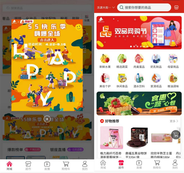 本届“双品网购节”还与55快乐季直播活动相结合,围绕“全民厨神计划”“全面健身计划”“男神女神养成计划”等相继推出30余场直播活动,以场景化、体验式营销方式拉进与消费者之间的距离,满足个性化消费需求。