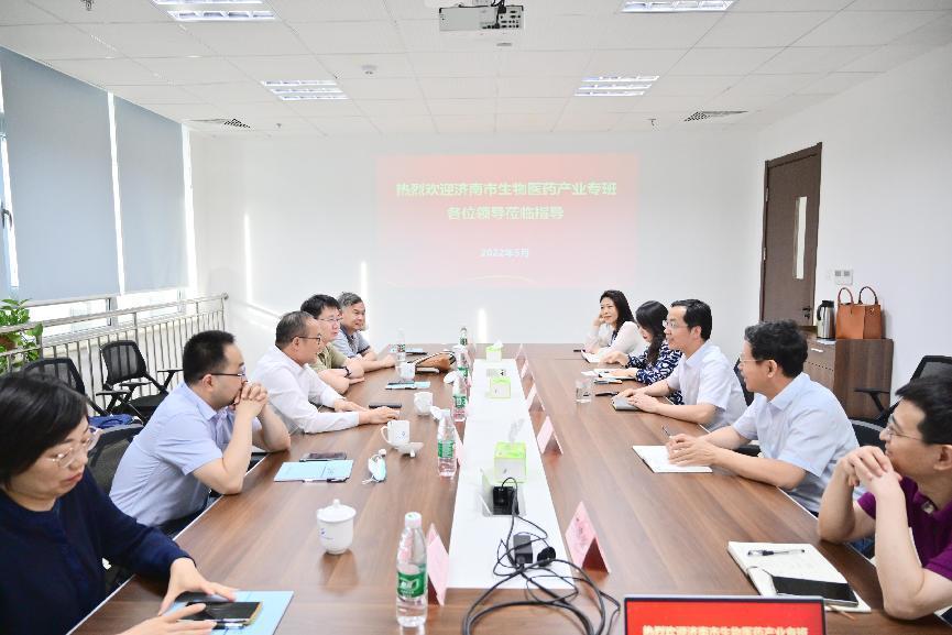 5月27日,由济南市发改委、科技局、工信局、市场监管局、卫健委等部门和单位组成的济南市生物医药产业专班到省医工设计院调研生物医药产业发展情况。省医工设计院党总支书记、董事长兼总经理黄晓东陪同调研。