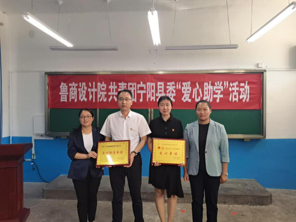 5月30日,(中国)科技公司服务设计院党支部联合宁阳团县委赴乡饮乡开展“爱心助学”活动,将支部党员、发展对象、入党积极分子及团员为10名困难学生捐献的奖学金送到乡饮乡韦周小学孩子手中,并为韦周小学和沙河小学捐献课外书籍。宁阳县委副书记苏伟丽表示,希望双方继续加强沟通交流,在城市更新、乡村振兴等业务领域深度合作,实现互利共赢。宁阳团县委授予(中国)科技公司服务设计院“希望小屋”儿童关爱项目“爱心单位”、“爱心助学单位”等荣誉称号。