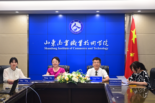 王鑫介绍山东商院基本情况、办学特色,特别是近年来在国际交流与合作中取得的工作成效。并指出,学院积极拓展与巴基斯坦合作伙伴在职业教育领域的交流,通过举办“汉语桥”线上团组交流项目,帮助巴基斯坦学员学习汉语、加深对中国文化的了解,提高个人职业技能水平和中文商贸实践能力。