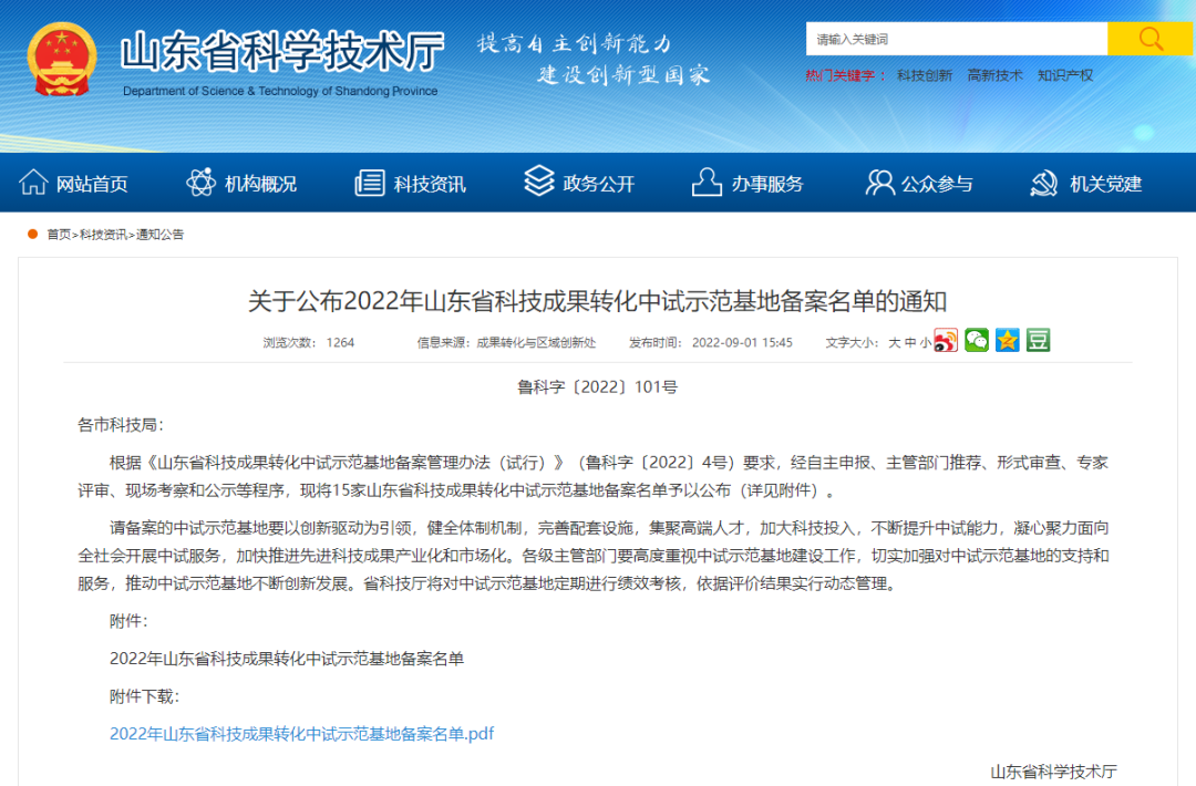 山东省科技成果转化中试示范基地是以行业优势科教资源或企业科研平台为依托,由法人单位建设或运营,聚集中试设施设备,具备专业人才资源,对小试研发成果进行二次放大和熟化研发,进而为企业规模生产提供成熟、适用、成套技术的成果转化服务实体,是支撑引领产业创新发展,加速科技成果产业化的重要平台。