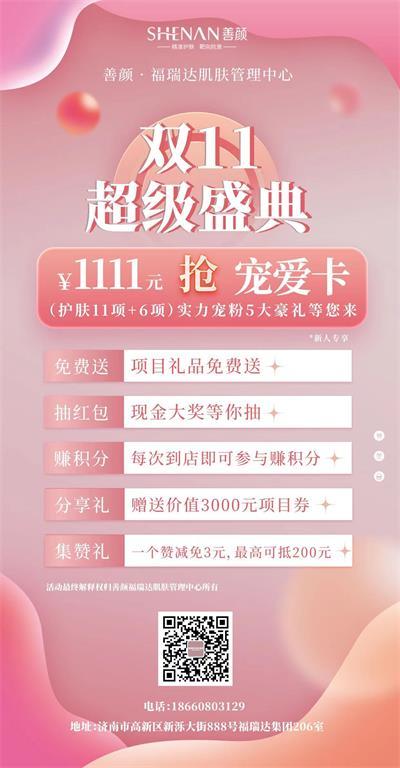 善颜品牌在小红书、微博、抖音等各大分享平台获得众多达人推荐,其中,品牌重点发力抖音达播渠道,善颜透明质酸钠液态饮单品单场销售量突破70万元。截至目前,线上全渠道销售额同比增长1396%。济南线下13家门店同步推出1111元抢宠爱卡、“护肤项目+礼品”等5大豪礼实力宠粉,定制化服务项目极大提升消费者购物体验。