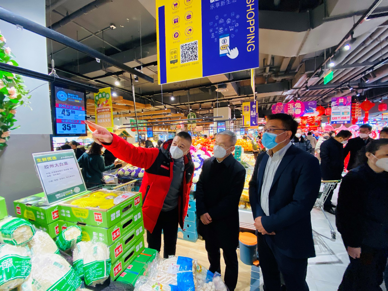 杨福涛听取了门店负责人关于商品供应、食品安全、消防安全等方面的汇报,实地察看了米面粮油肉蛋奶等商品的供应、价格及销售情况,并对节日期间坚守岗位的广大银座干部职工表示慰问。杨福涛表示,春节是传统消费旺季,要针对群众消费特点和需求变动精心组织各类促销活动,强化货源组织、丰富商品种类,确保节日期间供应充足、品种齐全、价格稳定;同时,要严把安全关口,进一步严格落实安全生产主体责任,强化食品安全监管,堵牢消防安全漏洞,为广大群众营造一个安全、放心、和谐的节日消费环境。