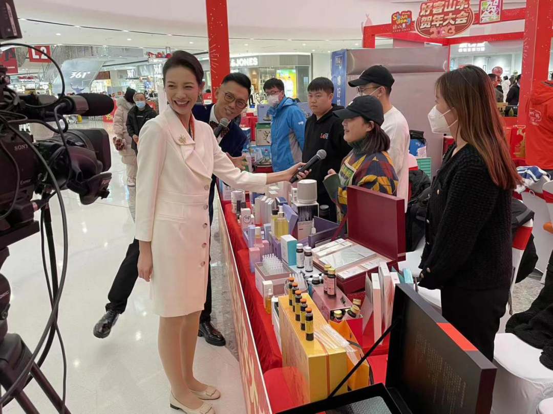 聚合“线下大集+线上带货+宣传推广”多元形式,年货展销现场设置带货直播间专区。山东广播电视台两位主持人全方位介绍福瑞达旗下多款好品功效、使用方法,让全国各地的网友可以突破空间限制,第一时间将山东好品带回家,实现新年美丽蜕变。