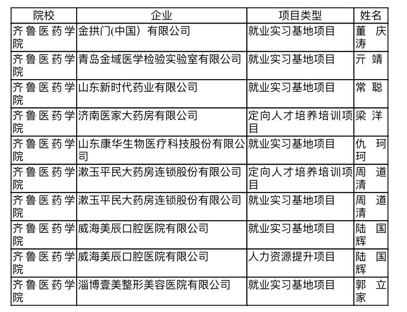 4月6日,教育部公布第二期供需对接就业育人项目立项名单,齐鲁医药学院10个项目获批立项。