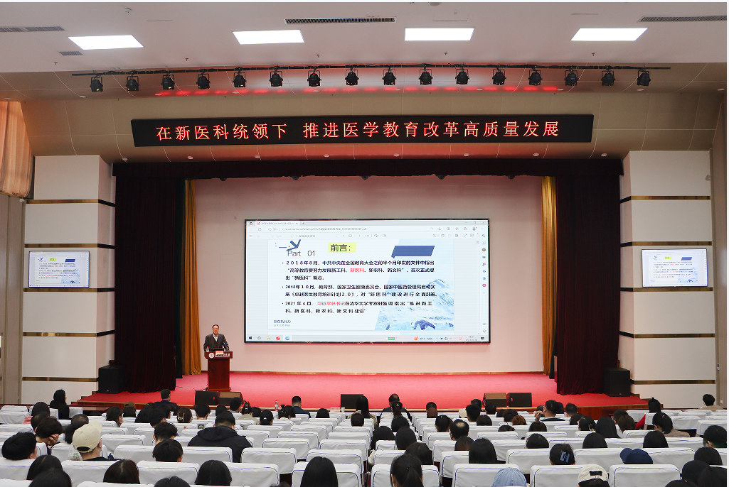 4月10日,齐鲁医药学院邀请全国医学教育发展中心特聘专家、中国医科大学教授孙宝志作《在新医科统领下推进医学教育改革高质量发展》专题讲座。学院院长韩冰主持,副院长耿磊、顾问张培功及各二级学院(部)负责人、教师代表参加。