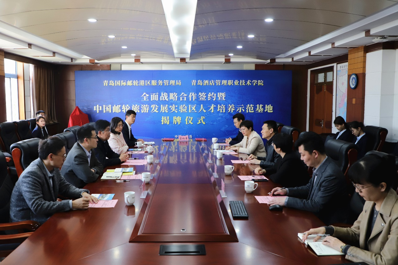 青岛国际邮轮港区服务管理局综合部、邮轮文旅部,青岛酒店学院相关负责人参加活动。
