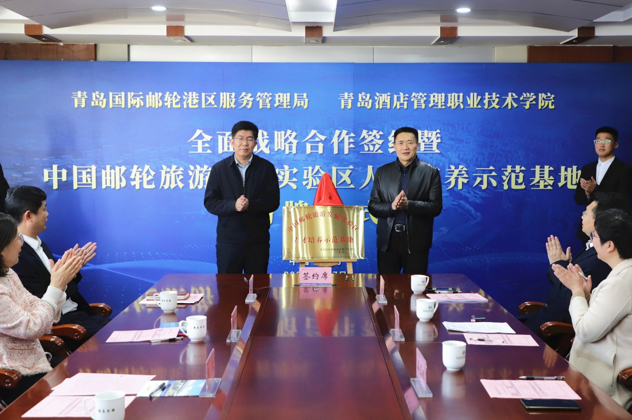 4月7日,青岛酒店学院与青岛国际邮轮港区管理局“全面战略合作协议签约暨中国邮轮旅游发展实验区人才培养示范基地揭牌仪式”举行。青岛市北区委副书记、青岛国际邮轮港区服务管理局常务副局长高波,青岛国际邮轮港区服务管理局党组成员、副局长张平,青岛酒店学院院长姜玉鹏参加活动。