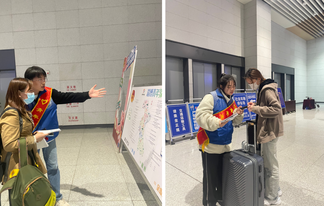 青年志愿者为组团来淄各界朋友提供路线引导、问题解答、推介宣传、协助申请入住青年驿站等服务,为大学生宣传淄博市“人才金政50条”、介绍市内旅游攻略等信息,助力淄博“青年发展友好型城市”建设。