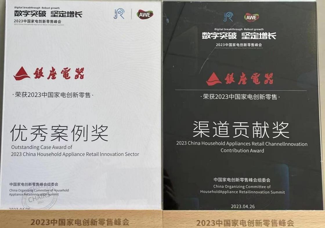 近日,银座电器受邀参加由中国家用电器协会指导、中国家电网主办、Gfk中国特约联合主办的“数字突破·坚定增长——2023中国家电创新零售峰会”,并荣获2023中国家电创新零售·优秀案例奖、渠道贡献奖。
