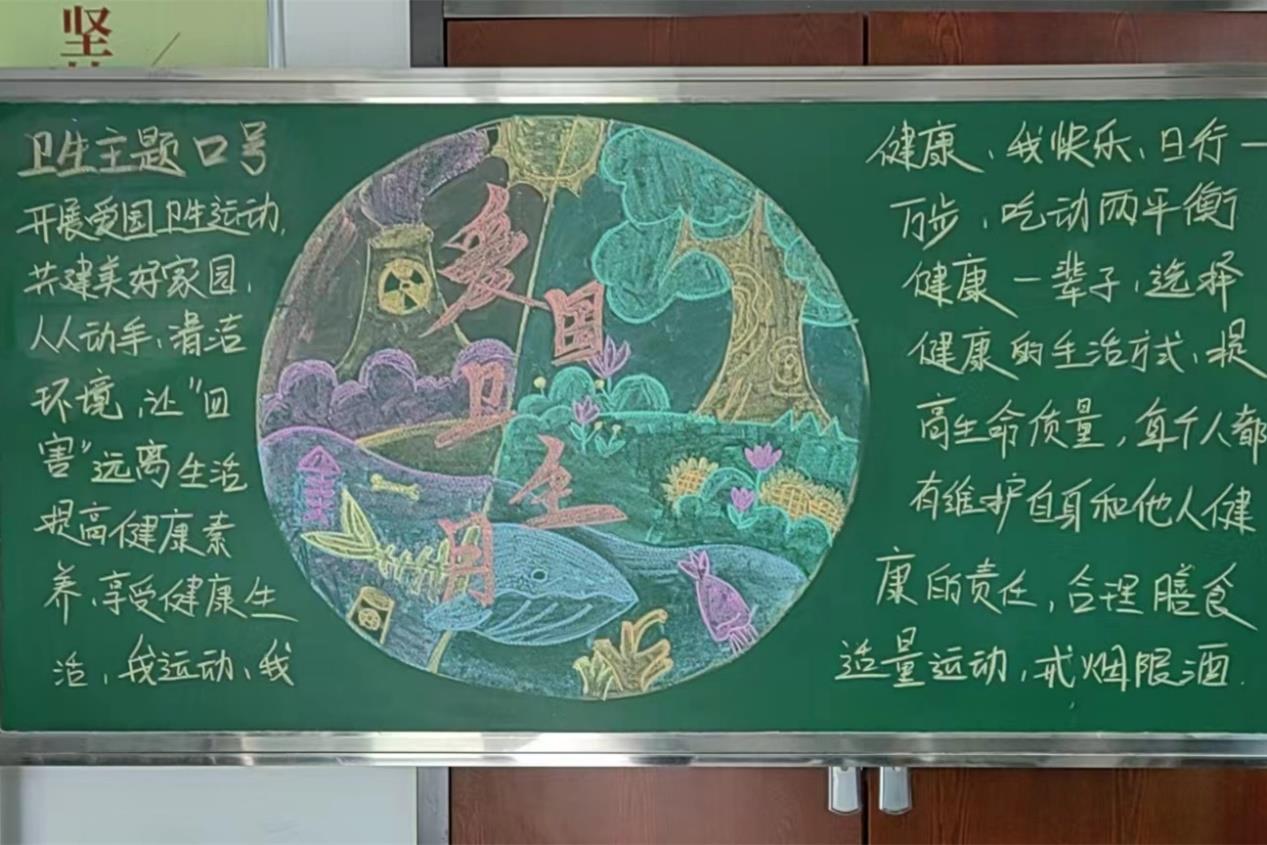 学校通过张贴宣传标语、绘制黑板报、电子大屏幕、举行创意作品大赛等形式广泛宣传第35个爱国卫生月,普及健康卫生知识。通过宣传教育,充分带动广大师生积极参与到活动中来,形成人人讲卫生、处处环境优的良好校园氛围。