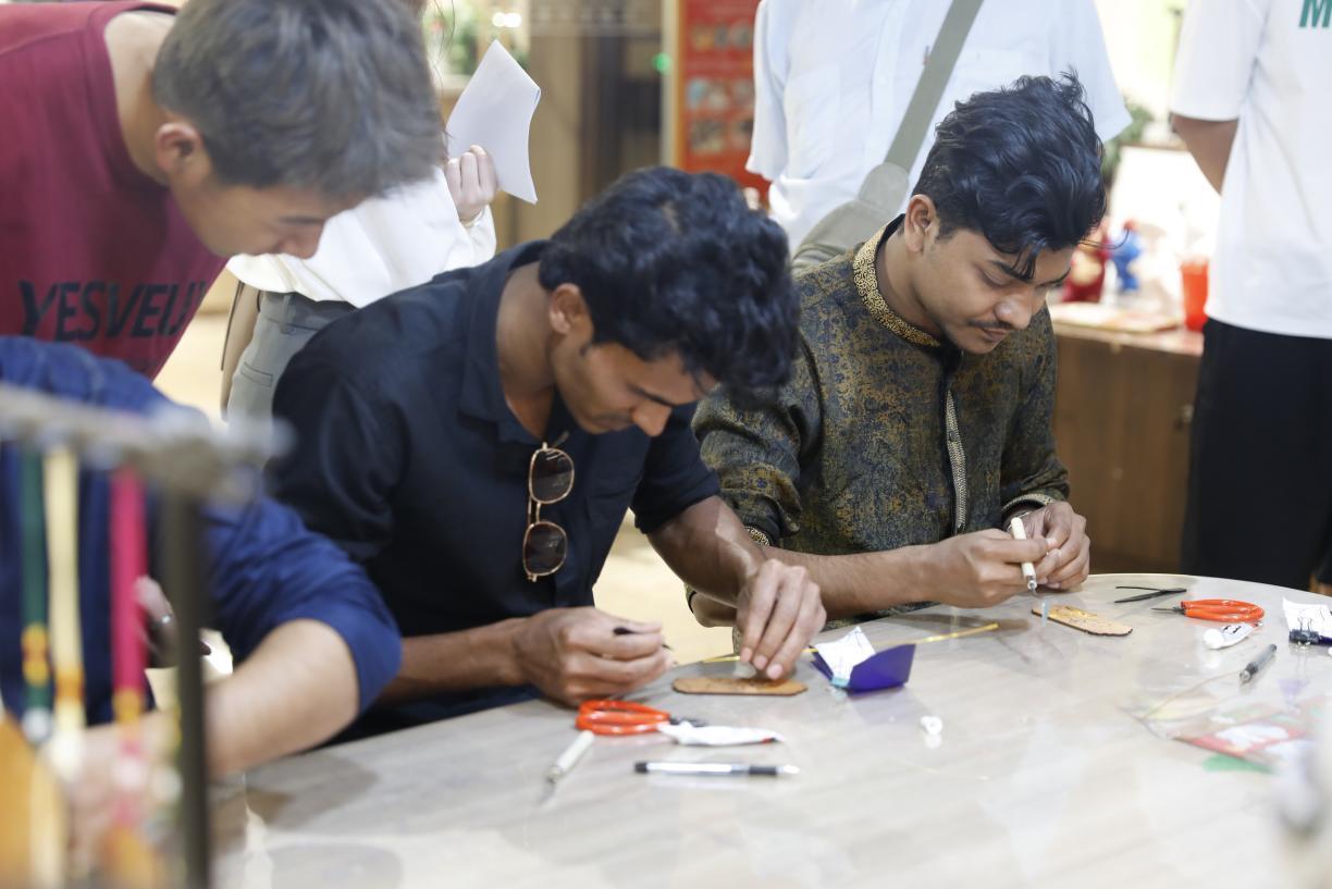 掐丝珐琅是最具中国特色的传统手工艺品之一,在老师的带领下,外籍师生体验了涂胶、掐丝、调沙、固沙、风干等环节。“这真的太精彩了,掐丝珐琅给我带来了非常有趣的体验。”来自巴基斯坦的外籍教师阿润激动地说道。