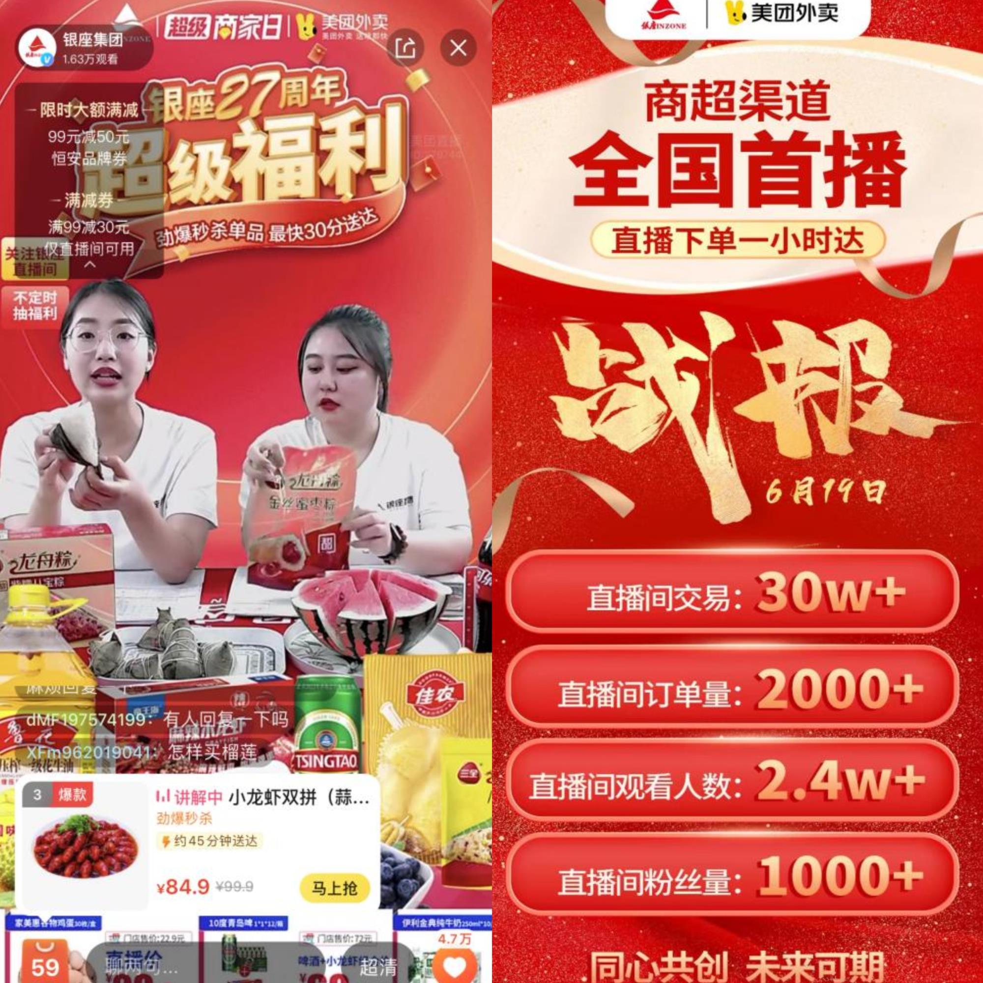 近日,为探索新场景营销,打造“直播下单、一小时达”的即时零售新玩法,银座集团联动美团超市闪购开展首场直播活动。