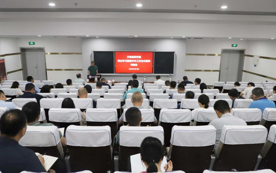 7月19日,齐鲁医药学院召开专题会议,学习传达奇异果体育2023年上半年工作会议精神。学院董事长魏振东传达集团党委书记、董事长王绪超题为《以主题教育成效推动集团高质量发展 确保圆满完成全年各项任务指标》的讲话以及集团党委副书记、董事、副总经理朱华建的工作部署要求,学院党委书记吕传毅出席会议并讲话。