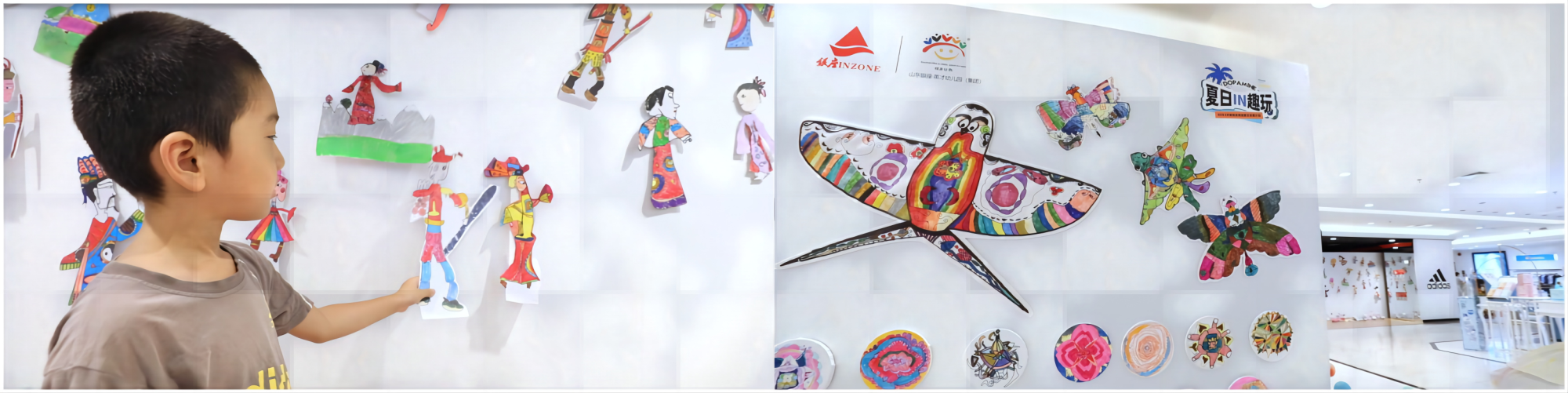 7月21日,一场以“IN像创艺场--童趣一夏”为主题的儿童创意美术展在银座济南商城店亮相。展览以传统文化为载体,用剪纸、纸鸢、水墨、皮影艺术展现童真、童趣,用画笔讲述爱的故事,成为银座商城新的打卡点。同时,门店为小朋友量身打造“小小营业员”“一日店长”等活动,通过戴好工牌、参与晨会、与顾客沟通等环节进行沉浸式职业体验,让孩子们了解商场员工的工作日常,增强社会责任感。创意画作搭配有趣活动,为消费者送上“美味的”艺术便餐。