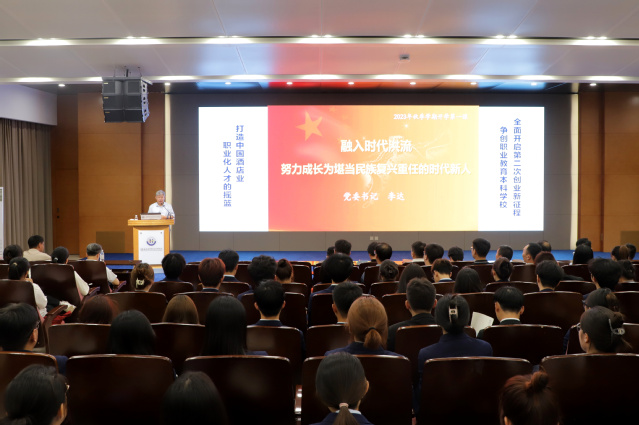 9月20日,青岛酒店学院党委书记李达走进课堂,以《融入时代洪流 努力成长为堪当民族复兴重任的时代新人》为题,为全校学生讲授“开学第一课”,副校长宫恩龙主持。