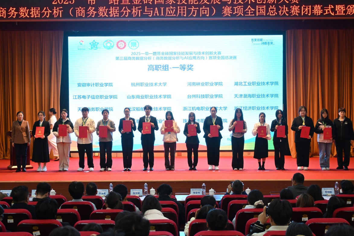 近日,第九届“一带一路”暨金砖国家技能发展与技术创新大赛——第三届商务数据分析与AI应用赛项全国总决赛圆满落幕。本次大赛吸引了来自全国195所本科、高职及中职院校的199支学生团队同台竞技。经过激烈角逐,山东商职学院代表队荣获高职组全国一等奖,学校荣获“最佳组织奖”。